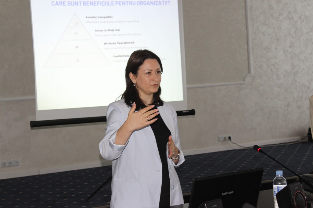 Formatorii au abordat, pe rând, tematici vitale pentru agenții economici prezenți, acoperind aspecte precum principiile, clasificarea și avantajele procedurii de certificare, sistemul de management al riscurilor, procedura detaliată de implementare a sistemelor de management al calității, documentele esențiale ale sistemului ISO și procesul de audit și certificare.